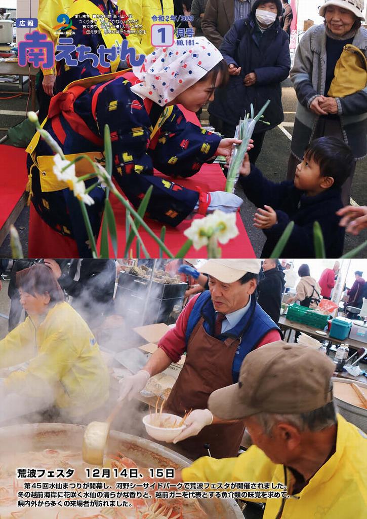 広報紙全体の内容は、広報南えちぜん令和2年1月号(全体版) をご覧ください。 (解像度低)