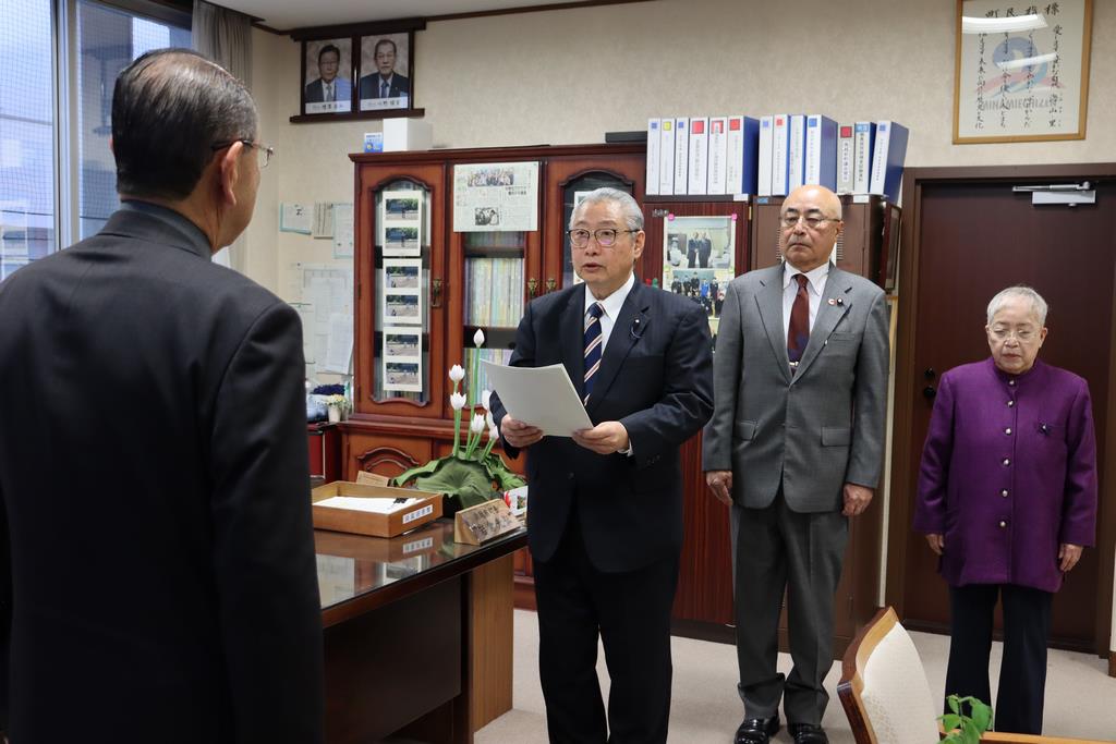 令和6年12月6日(金)、熊谷町議会議長から岩倉町長に対し、議員報酬の見直しに関する申し入れがありました。